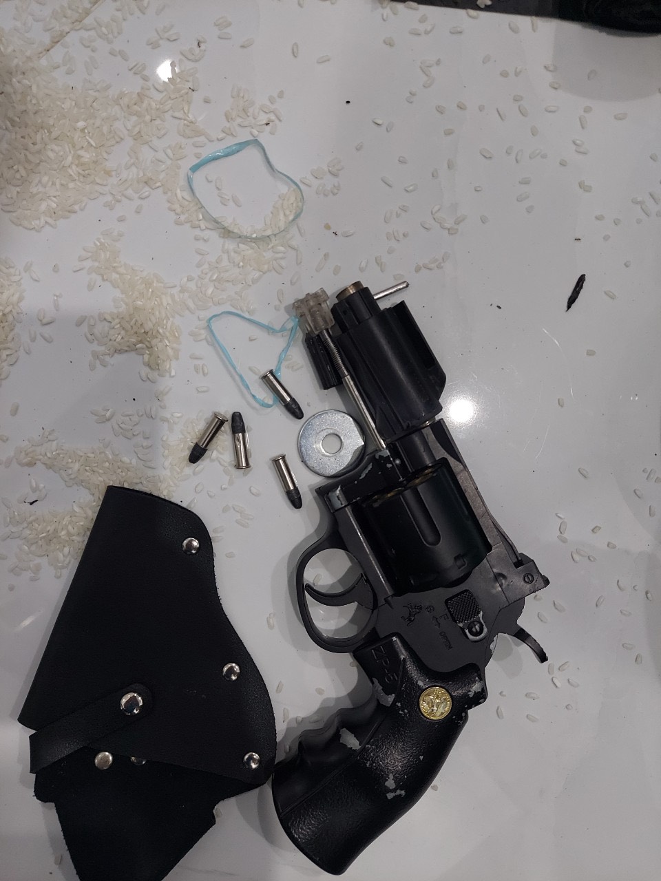 Qua cuộc khám xét khẩn cấp nơi ở của đối tượng Trường, công an phát hiện 1 khẩu súng tự chế cùng 4 viên đạn thể thao.