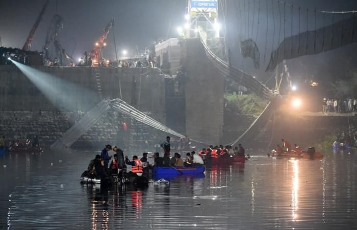 Hiện trường sập cầu treo tại bang Gujarat, Ấn Độ ngày 30/10. Ảnh - AFP