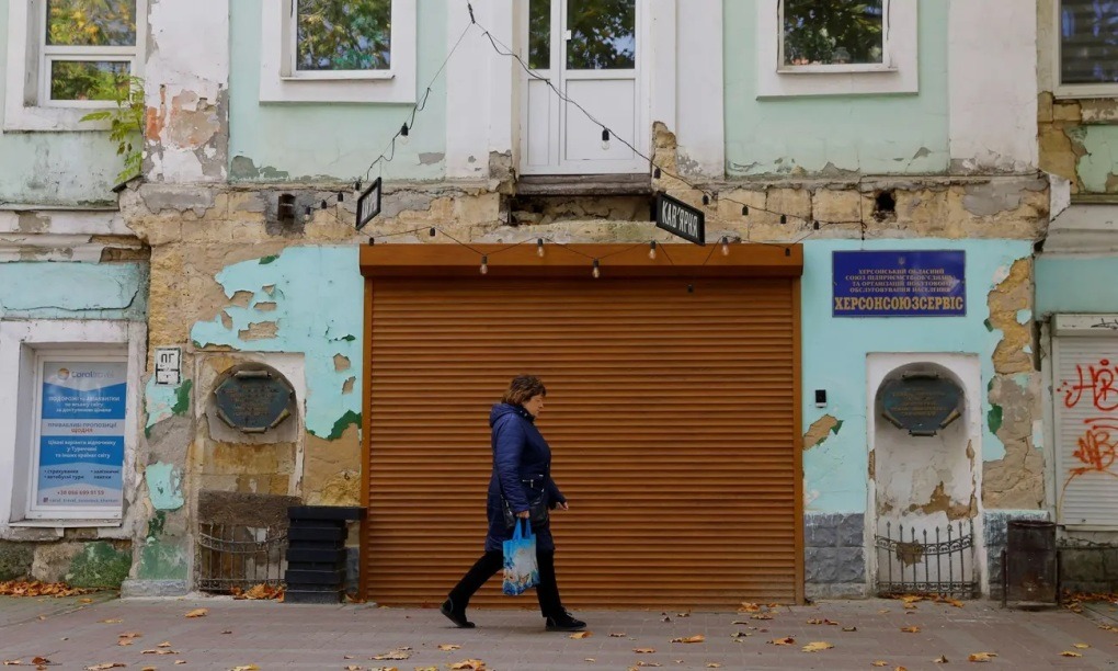 Người phụ nữ đi trên một con phố ở Kherson, miền nam Ukraine hôm 31/10. Ảnh: Reuters.