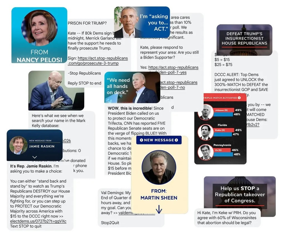 Hơn 940 độc giả đã chia sẻ trải nghiệm với New York Times, mô tả bão tin nhắn từ cả hai đảng. Để minh họa, độc giả cũng gửi hơn 1.000 hình ảnh về các tin nhắn chính trị được gửi đến điện thoại mình. Nhiều tin nhắn trong số đó chứa nội dung gây chia rẽ hoặc lừa đảo.