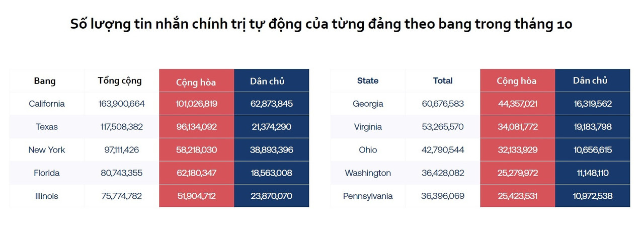 Barba không phải trường hợp duy nhất. Vào tháng 10, người dân ở Mỹ đã nhận được ước tính 1,29 tỷ tin nhắn tin nhắn liên quan chính trị - nhiều gấp đôi so với tháng 4 - theo RoboKiller, một ứng dụng chặn cuộc gọi tự động và tin nhắn rác.