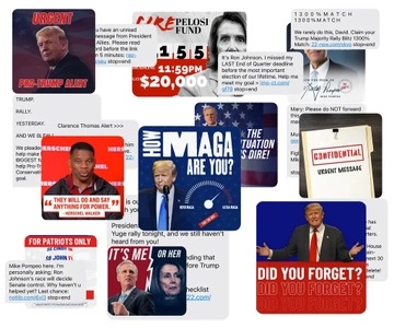 Trong một số trường hợp, các tin nhắn vận động tranh cử không tiết lộ rõ ràng về các nhà tài trợ của họ. Những tin nhắn khác vận động quyên góp và chứa các liên kết không xác định, khiến việc phân biệt thông điệp chiến dịch thực sự với hành vi lừa đảo hoặc thư rác trở nên rất khó khăn.