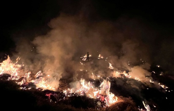 Những cánh đồng rực lửa trở thành cảnh tượng quen thuộc khi nông dân đốt rơm rạ để dọn dẹp ruộng đồng sau vụ thu hoạch và chuẩn bị cho vụ gieo hạt tiếp theo. Họ thu hoạch vụ hè vào tháng 10 và sẽ gieo sạ vụ đông vài tuần sau.