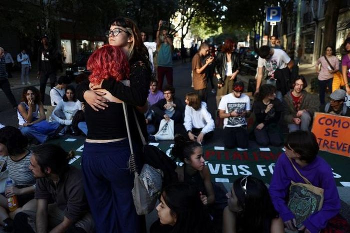 Các nhà hoạt động vì môi trường biểu tình phản đối sử dụng nhiên liệu hóa thạch ở TP Lisbon – Bồ Đào Nha hôm 12-12 Ảnh: REUTERS