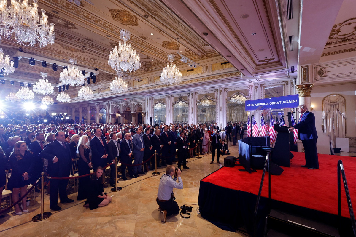 Người ủng hộ trong bữa tiệc tuyên bố tranh cử của ông Trump ở Florida hôm 15/11. Ảnh: Reuters.