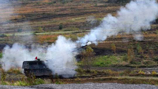 Binh sĩ Đức huấn luyện trên pháo tự hành Panzerhaubitze 2000 trong cuộc tập trận ở Munster, miền bắc nước Đức. Ảnh: AFP