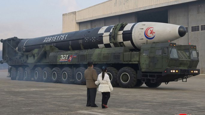 Các bức ảnh do hãng tin nhà nước Triều Tiên KCNA cho thấy ông Kim Jong-un nắm tay con gái. Quả tên lửa đạn đạo liên lục địa (ICBM) được đặt trên bệ phóng di động gần đó.
