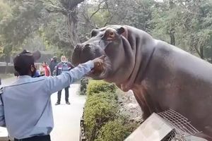 Đoạn video lan truyền cho thấy nhân viên bảo vệ nhanh trí dũng cảm ngăn cản con hà mã to lớn đang cố gắng thoát ra khỏi chuồng nuôi bên trong sở thú.
