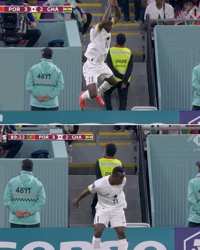 Với việc thắp lên hy vọng lội ngược dòng cho Ghana, cầu thủ Bukari chạy ra phía đường biên và nhảy lên ăn mừng Siuuu! theo kiểu của Ronaldo - cũng là cách mà Ronaldo đã ăn mừng sau khi sút thành công quả penalty trước đó.