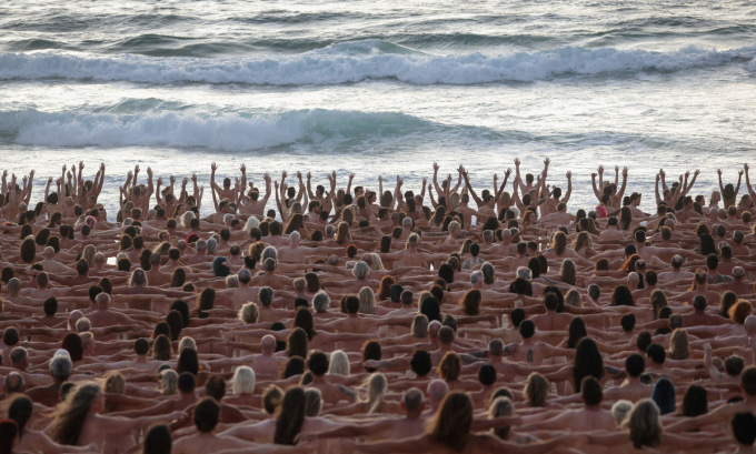 Khoảng 2.500 người cùng chụp ảnh khỏa thân trên bãi biển Bondi ở Australia trong dự án nâng cao nhận thức về ung thư da.