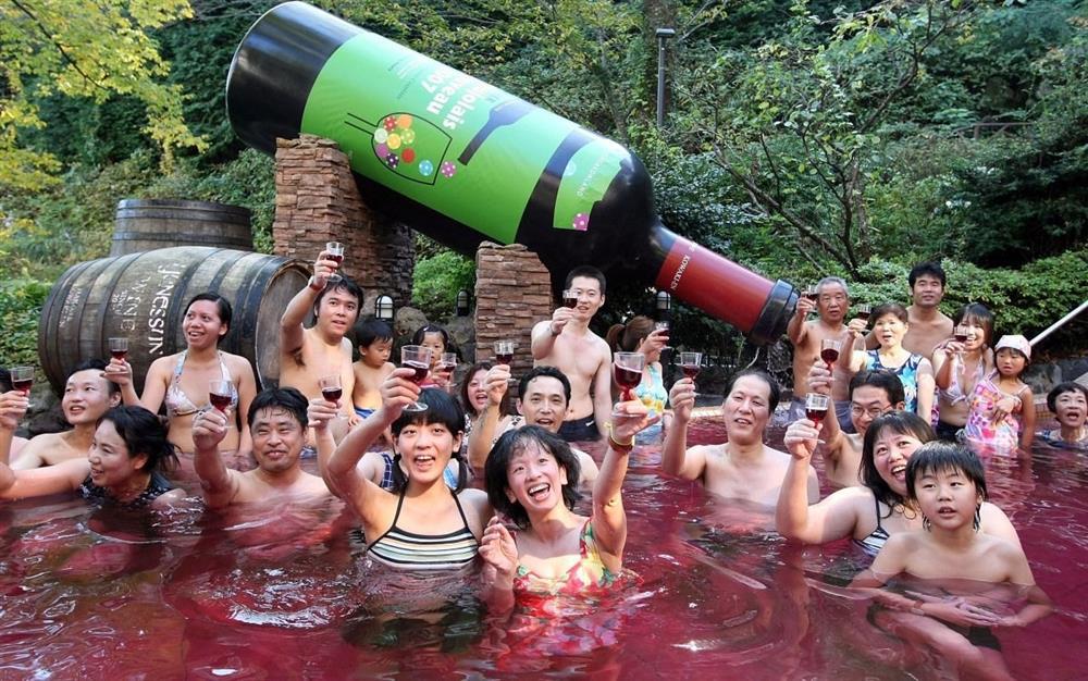 Tắm trong rượu vang được coi là một liệu pháp làm trẻ hóa cơ thể, được người Nhật yêu thích. Đây cũng là sở thích của nữ hoàng Ai Cập Cleopatra thời xưa.