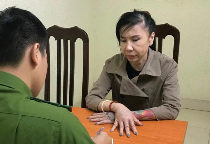 Dung "Thà" tại trụ sở điều tra. (Ảnh: Công an cung cấp).