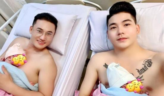 Cặp đôi Hà Trí Quang và bạn trai đồng giới Thanh Đoàn vừa chia sẻ khoảnh khắc hạnh phúc, chính thức đón 2 con song sinh Ka Ka - Muội Muội chào đời.