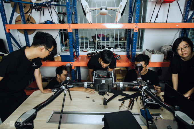 Xưởng chế tạo máy bay không người lái của tiến sĩ Quốc. Ảnh: Gia Chính