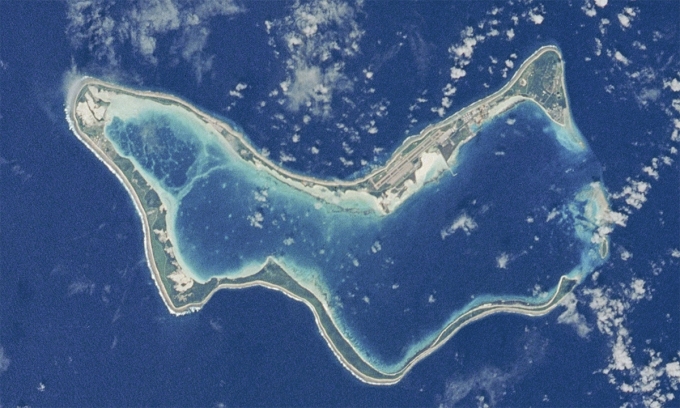Đảo Diego Garcia thuộc quần đảo Chagos tháng 11/1990. Ảnh: NASA.