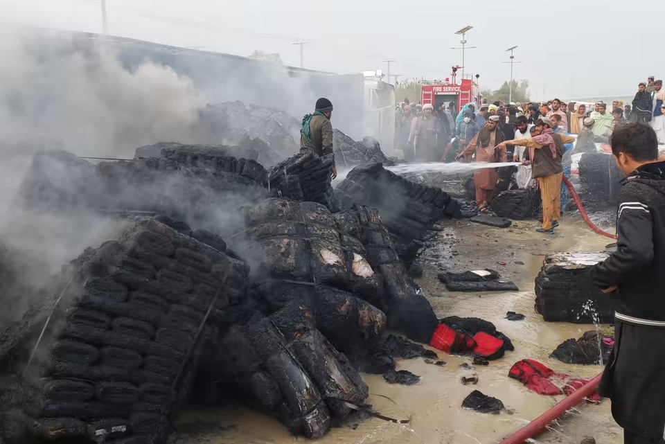 Một xe tải chở hàng bị trúng đạn pháo trong cuộc giao tranh tại cửa khẩu Chaman tại khu vực biên giới giữa Pakistan và Afghanistan. Ảnh: Reuters.