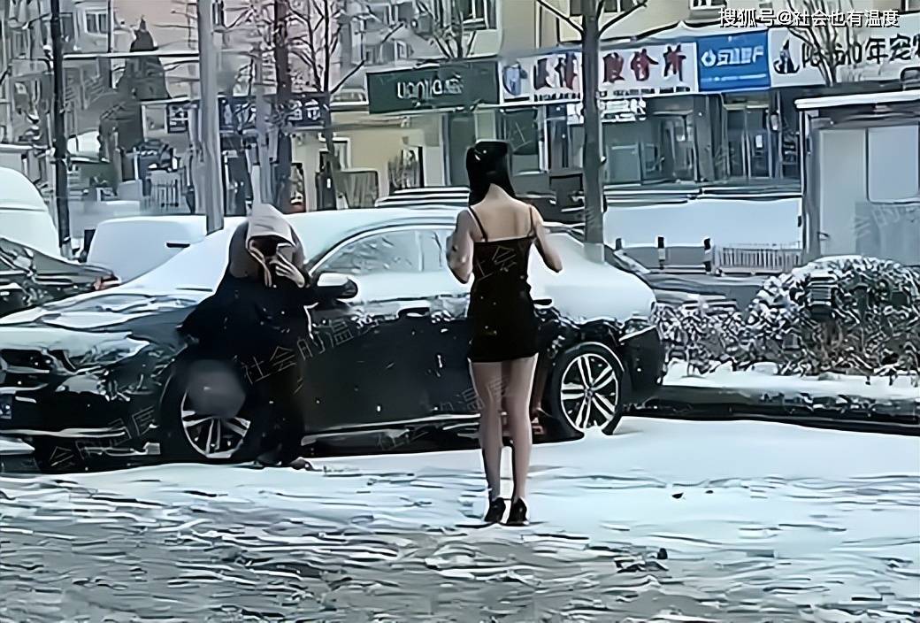 Old  Default Giữa trời tuyết lạnh thấu xương, cô gái "dũng cảm" mặc váy 2 dây tạo dáng giữa đường