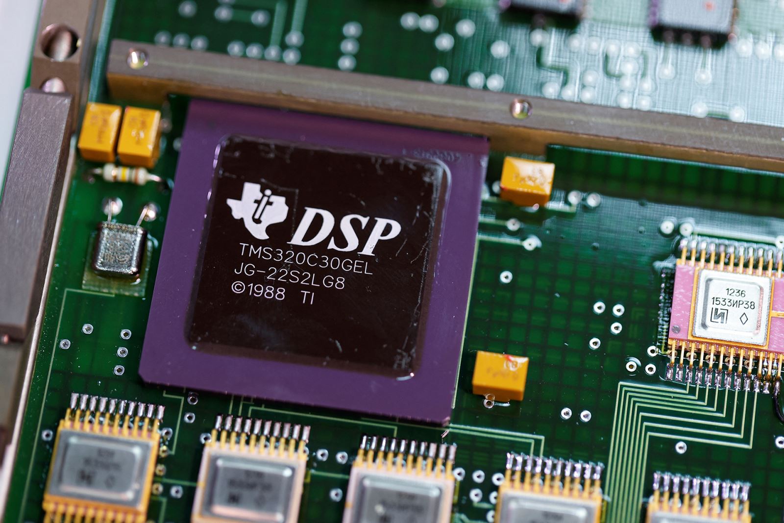 Một con chip của Texas Instruments trên bảng mạch tên lửa 9M727 của Nga. Ảnh: Reuters
