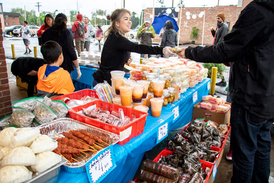 Sạp bán đồ ăn bên ngoài khu chợ New Saigon ở TP Denver .Ảnh: DENVERITE