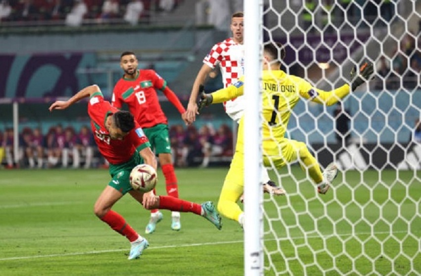 Đến phút 90+5, trong một giây phút lơ là, hàng thủ Croatia đã bỏ lọt En-Nesyri, tuy nhiên, cú bật cao đánh đầu của cầu thủ này đã đưa bóng đi vọt xà.*