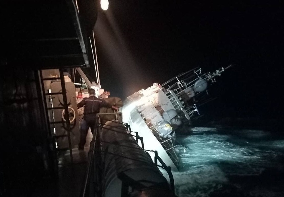 Tàu hộ vệ tên lửa HTMS Sukhothai của Thái Lan bị chìm vì sóng lớn. Ảnh: Royal Thai Navy