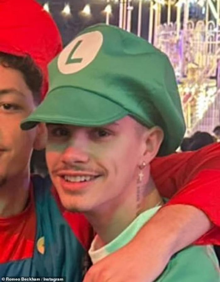 Vừa qua, Romeo Beckham đã hóa trang thành nhân vật Luigi trong loạt trò chơi Super Mario Bros để có một đêm vui nhộn cùng bạn bè tại Winter Wonderland, London. Anh mặc bộ quần áo bằng vải thô màu xanh lam đặc biệt của người thợ sửa ống nước.