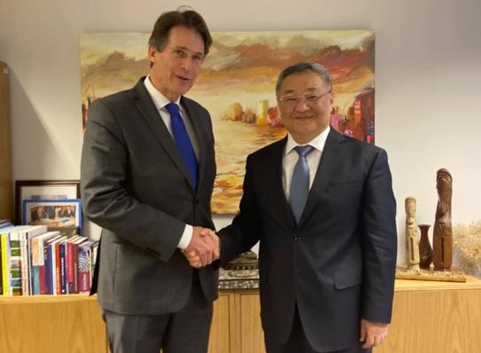 Đại sứ Trung Quốc tại Liên minh châu Âu Phó Thông (phải) - Ảnh: Twitter