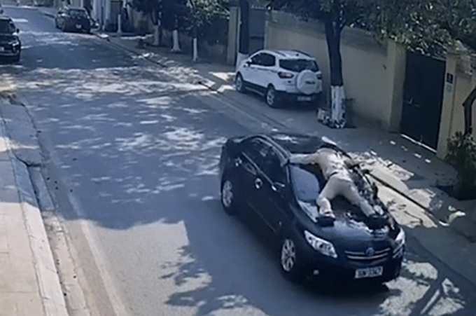 Lâm điều khiển ôtô hất văng cảnh sát giao thông lên lắp ca pô. Ảnh: Cắt từ video