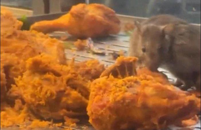 Một nhà hàng ở Kuala Lumpur - Malaysia phải đóng cửa 14 ngày sau khi lộ đoạn video quay cảnh chuột ăn gà rán trong quầy trưng bày thức ăn.