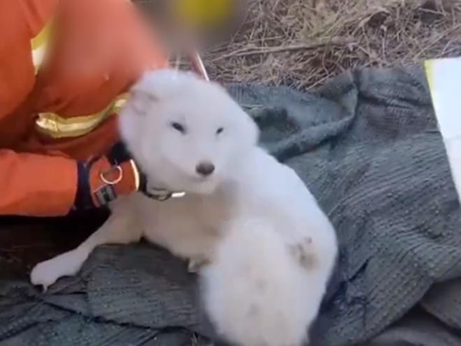 Theo như người đàn ông nhanh chóng gọi điện cho lực lượng cứu hộ để nhờ sự giúp đỡ. Con vật có thân hình to béo hơn hẳn đồng loại, nhìn thoáng qua thực sự giống một chú chó Samoyed lông xù. Những người lính cứu hộ đã lập tức dùng thiết bị chuyên dụng để đưa chú chó gặp nạn lên.