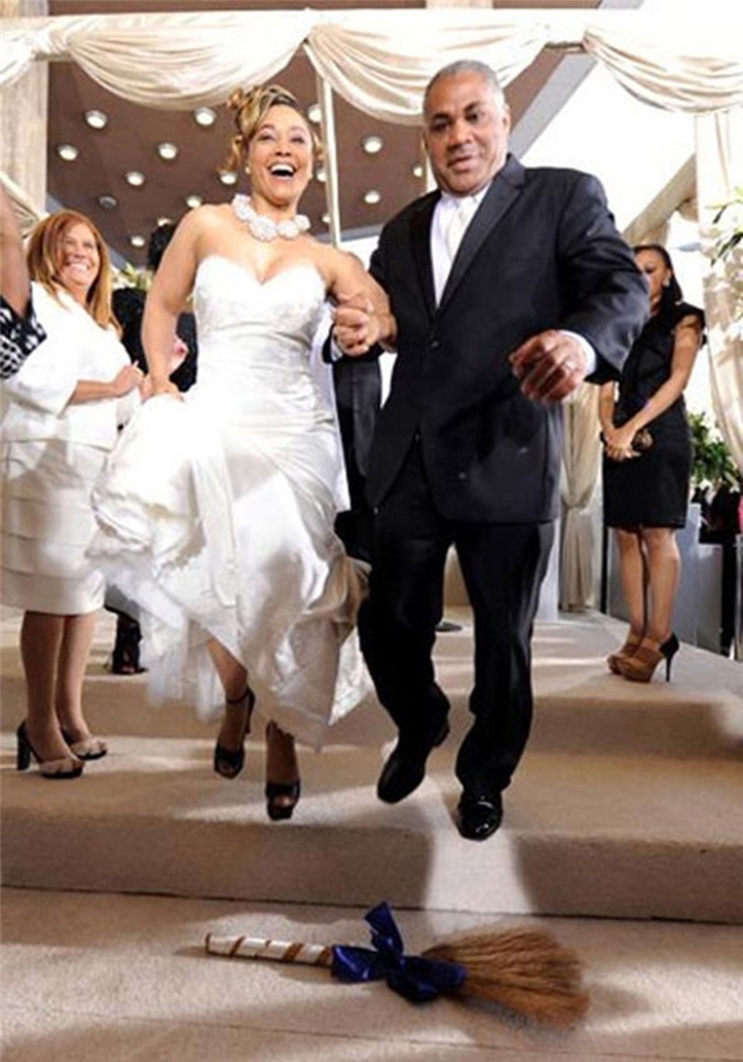 Nhảy qua chổi là một trong những truyền thống cô dâu, chú rể phải thực hiện trong ngày cưới của người Mỹ gốc Phi. Cái chổi sẽ giúp cô dâu chú rể quét đi quá khứ bao gồm cuộc sống độc thân và những mối quan tâm khác.