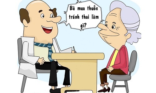 Một bà cụ yêu cầu bác sỹ cho thuốc tránh thai.