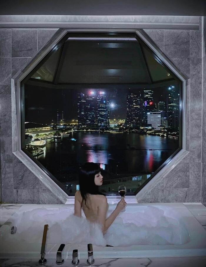 Cô nàng thể hiện sự tận hưởng, thư giãn tại địa điểm xa hoa