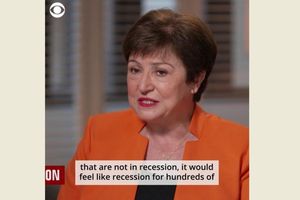 “Chúng tôi dự báo 1/3 nền kinh tế thế giới sẽ rơi vào suy thoái. Ngay cả ở những nước không bị suy thoái th́ hàng trăm triệu người dân của họ cũng sẽ cảm nhận giống như suy thoái đang diễn ra”, bà nói và cho biết thêm một nửa nền kinh tế EU sẽ suy thoái trong năm nay.