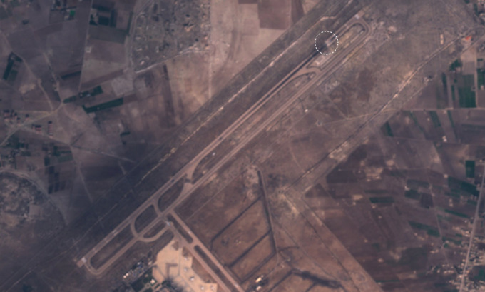 Hố va chạm tại đường băng phía bắc sân bay quốc tế Damascus sau vụ không kích của Israel ngày 2/1. Ảnh: Copernicus Sentinel.