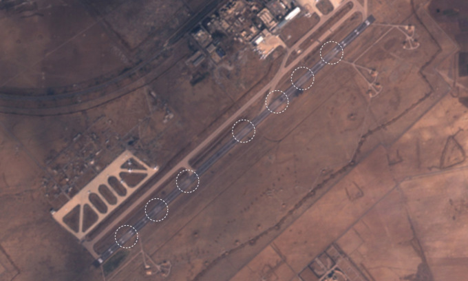 Ảnh chụp từ vệ tinh Sentinel-2 của Liên minh châu Âu cho thấy mức độ hư hại trên hai đường băng tại sân bay quốc tế Damascus ở Syria sau đòn không kích bằng tên lửa của Israel hôm 2/1. Ít nhất 7 hố lớn xuất hiện dọc đường băng phía nam, trong khi đường băng phía bắc chỉ có một vết va chạm.