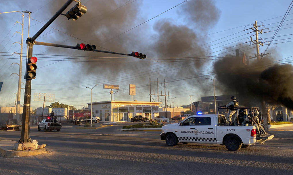 Thành viên Vệ binh Quốc gia Mexico tuần tra trên đường phố Culiacan, thủ phủ bang Sinaloa trong chiến dịch bắt con trai trùm ma túy El Chapo ngày 6/1. Ảnh: AFP.