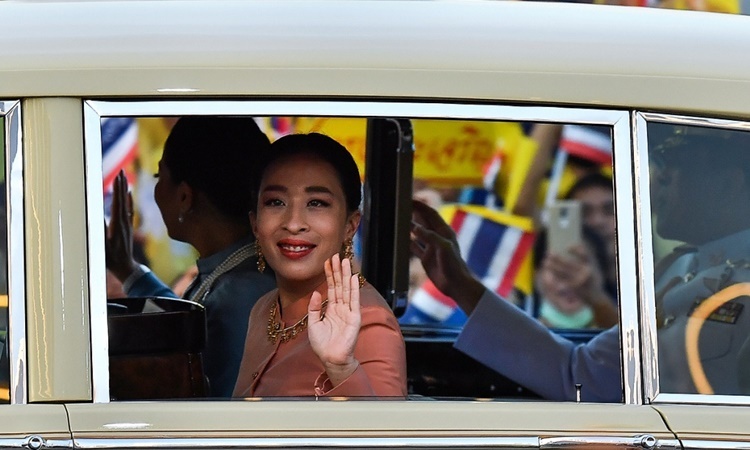 Công chúa Bajrakitiyabha Mahidol vẫy tay chào người ủng hộ trên đường đến Cung điện Hoàng gia ở Bangkok năm 2020. Ảnh: AFP.