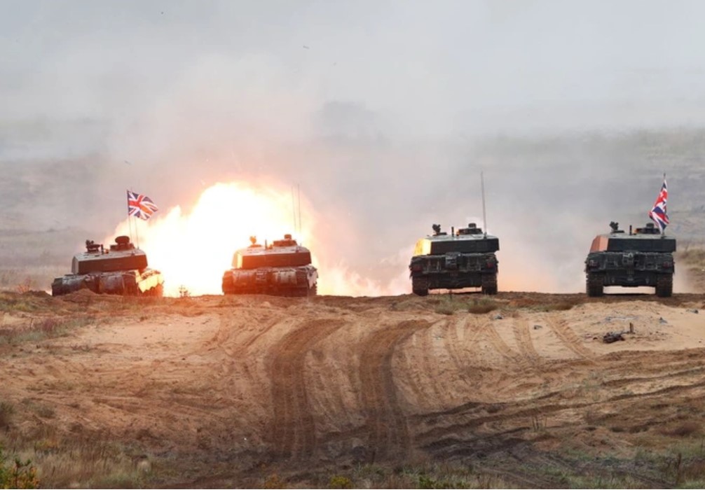 Xe tăng Challenger 2 của Anh khai hỏa trong một cuộc tập trận của NATO năm 2019 (Ảnh: Reuters).