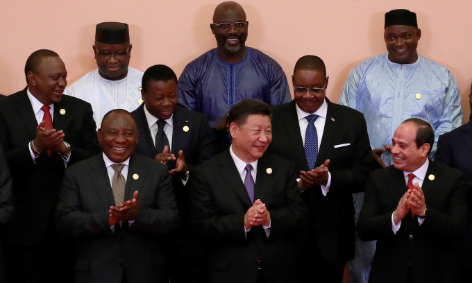 Chủ tịch Trung Quốc Tập Cận Bình cùng các lãnh đạo châu Phi tại Diễn đàn Hợp tác Trung - Phi ở Bắc Kinh vào tháng 9/2018. Ảnh: AFP.