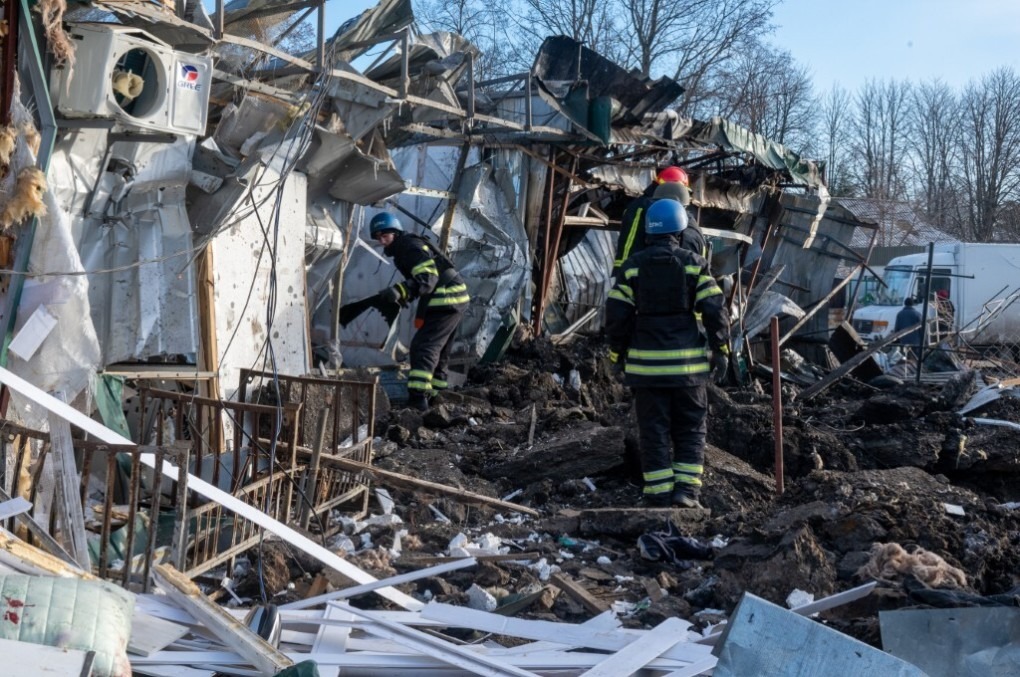 Lực lượng cứu hộ tại hiện trường khu chợ bị tấn công ở tỉnh Kharkov, miền đông Ukraine ngày 9/1. Ảnh: AFP.
