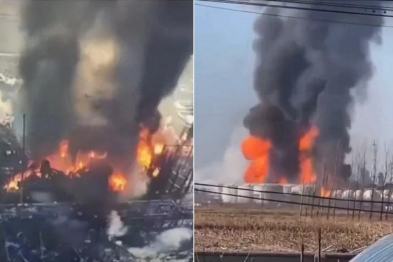 Các video đăng tải trên mạng xã hội cho thấy vụ nổ tạo đám cháy lớn với những cột khói khổng lồ bốc lên trời, biến khu phức hợp của nhà máy trở thành hiện trường đổ nát và gần như bị thiêu rụi toàn bộ.