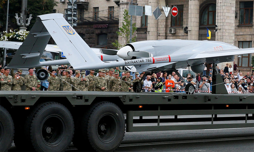 Máy bay không người lái Bayraktar TB2 của Ukraine trong lễ duyệt binh ở Kiev tháng 8/2021. Ảnh: Reuters.