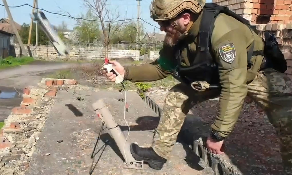 Binh sĩ Ukraine phóng UAV Switchblade tháng 5/2022. Ảnh: BQP Ukraine.