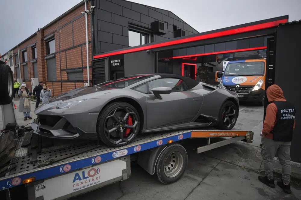 Giới chức Romania vận chuyển những chiếc xe bị tịch thu đến địa điểm chưa được tiết lộ. Ảnh: AP.