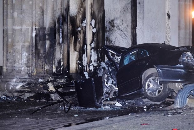 Chiếc xe đã đâm vào cột của cổng Brandenburg, một trong những địa danh mang tính biểu tượng của nước Đức đêm 16/1. Cảnh sát và các lực lượng cứu hộ đã có mặt ngay tại hiện trường.