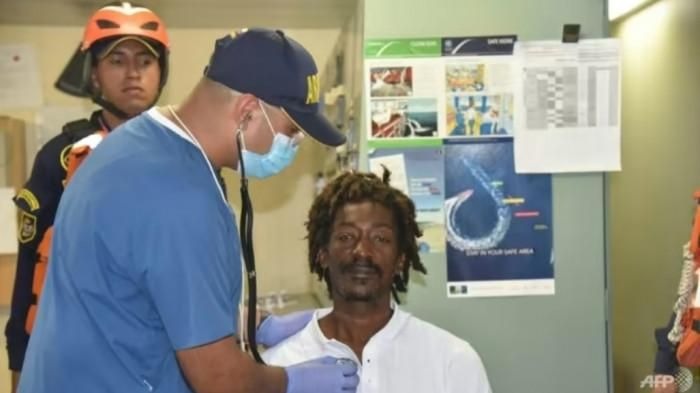 Bác sĩ kiểm tra sức khỏe cho anh Elvis Francois trong video do Hải quân Colombia đăng tải. Ảnh - AFP