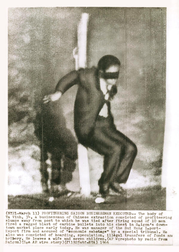 5 giờ ngày 14/3/1966, Tạ Vinh, Giám đốc Công ty Xuất nhập cảng Sui Hing, bị giải ra pháp trường cát vì các tội lũng đoạn nền kinh tế, đầu cơ tích trữ, chuyển ngân bất hợp pháp và hối lộ. Năm ấy ông ta vừa tròn 34 tuổi.