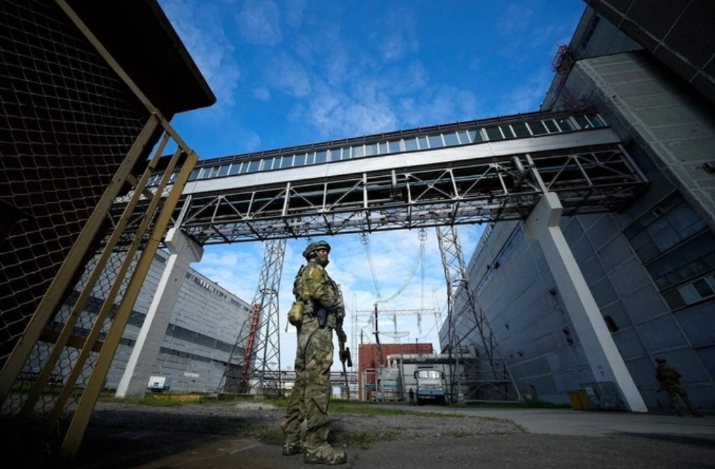 Binh sĩ Nga gác ở nhà máy điện hạt nhân Zaporizhia, Ukraine (Ảnh: AP).