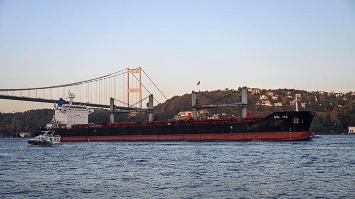 Một con tàu ngũ cốc đi qua eo biển Bosporus gần Istanbul, Thổ Nhĩ Kỳ, tháng 11/2022. Ảnh: AFP